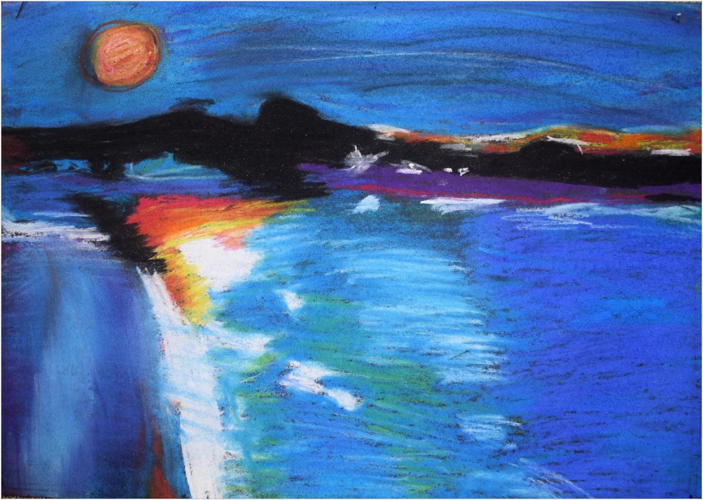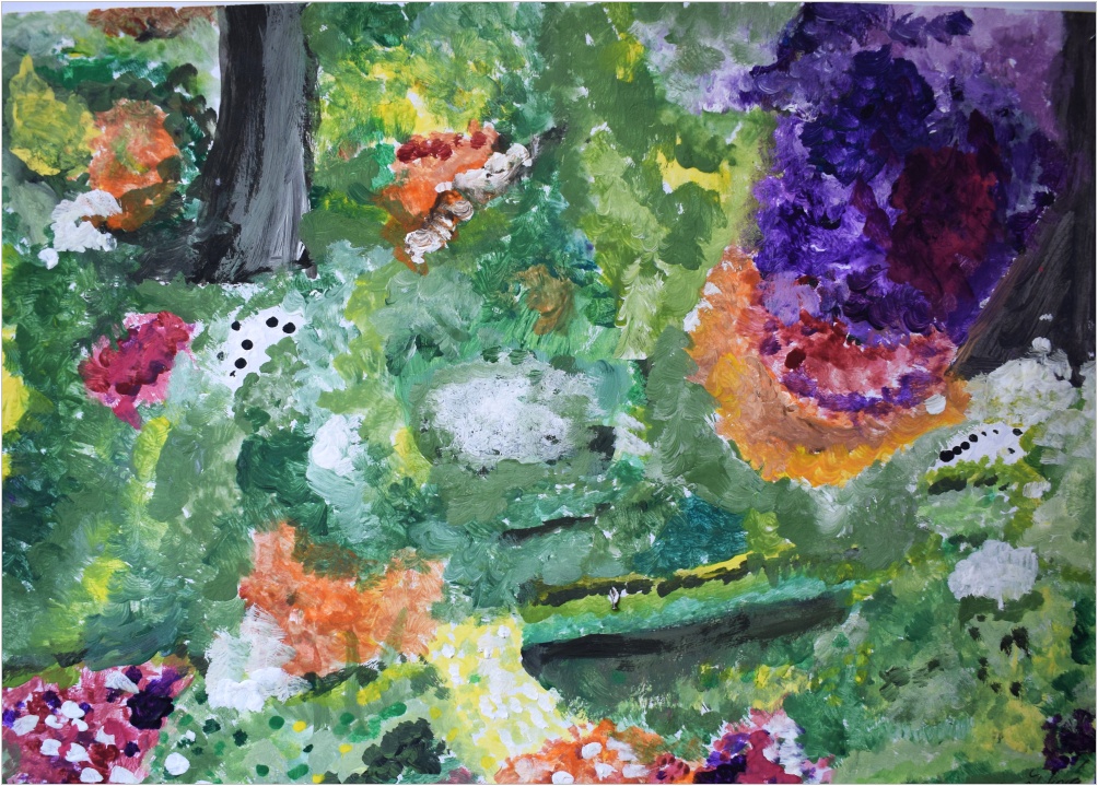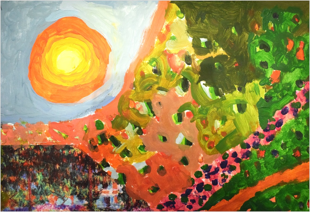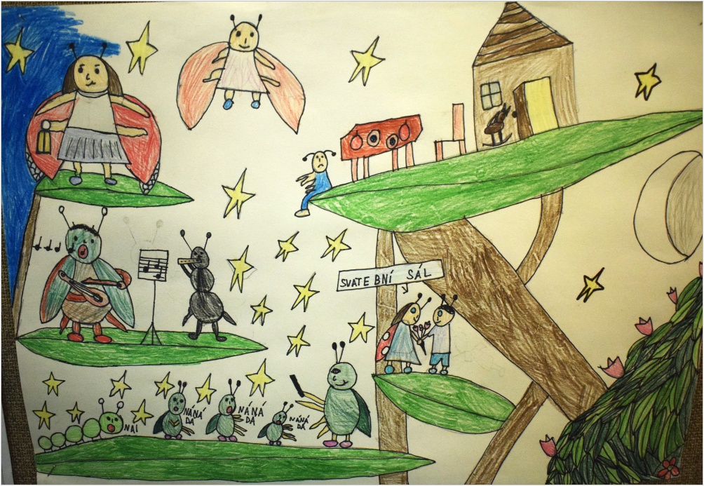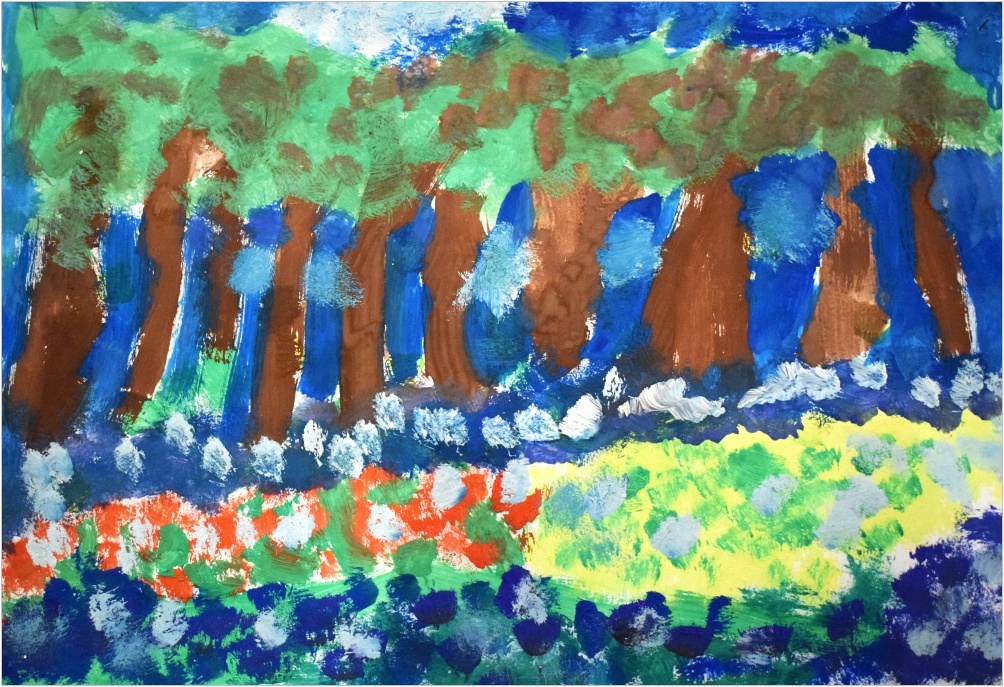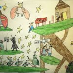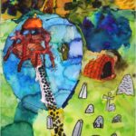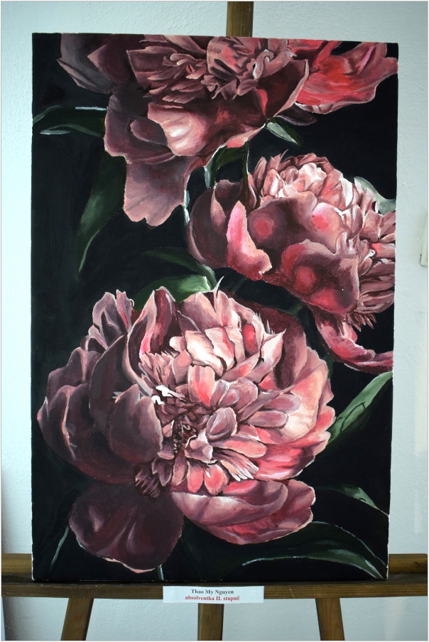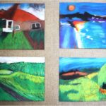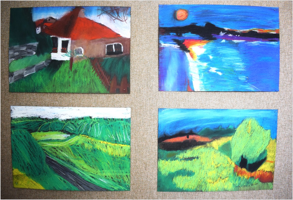 Výtvarné práce žáků ze závěrečné výstavy výtvarného oboru v Památníku Alfonse Muchy v Ivančicích 6. 6. – 20.6. 2025