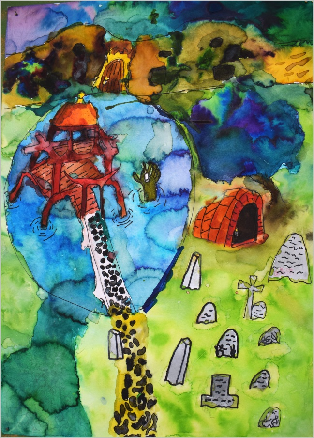 Odkazujeme se také s žáky výtvarného oboru tímto výtvarným projektem k tomuto cennému dědictví – tajnému, zapomenutému místu.